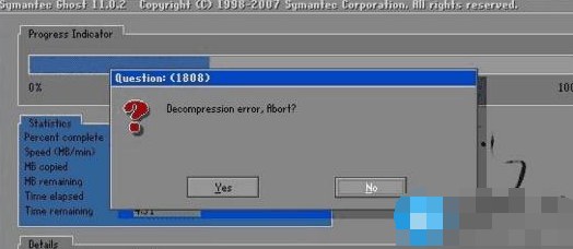 一、在GHOST恢复过程中出现Decompression error,Abort报错