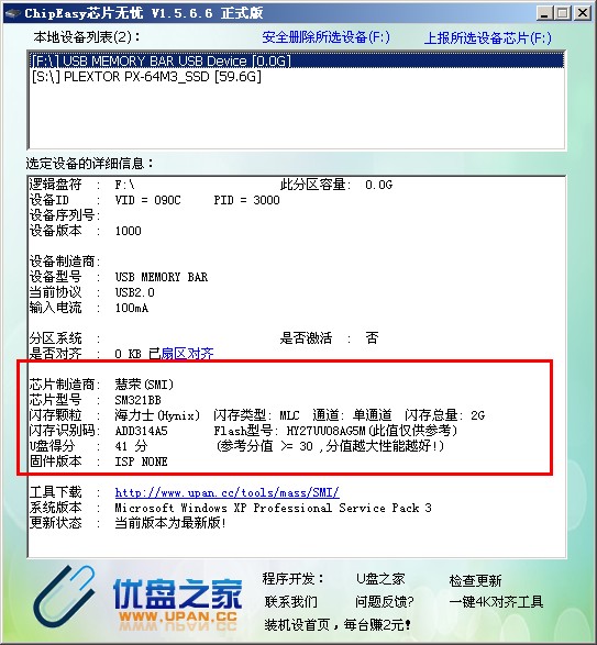 结果还是不能格式化。来软的看来是没有办法了,只能来硬的了,检查主控先,下载芯片无忧。