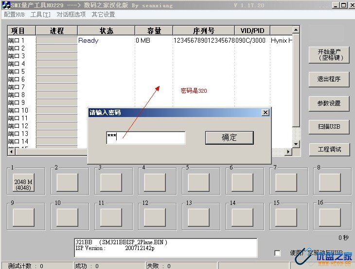 运行主程序后,识别到U盘了,那我们来设置吧,参数设置的密码是320