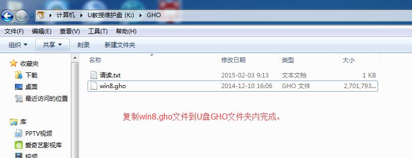 第一步:将 Win8.1 系统镜像包复制到U盘GHO文件夹内