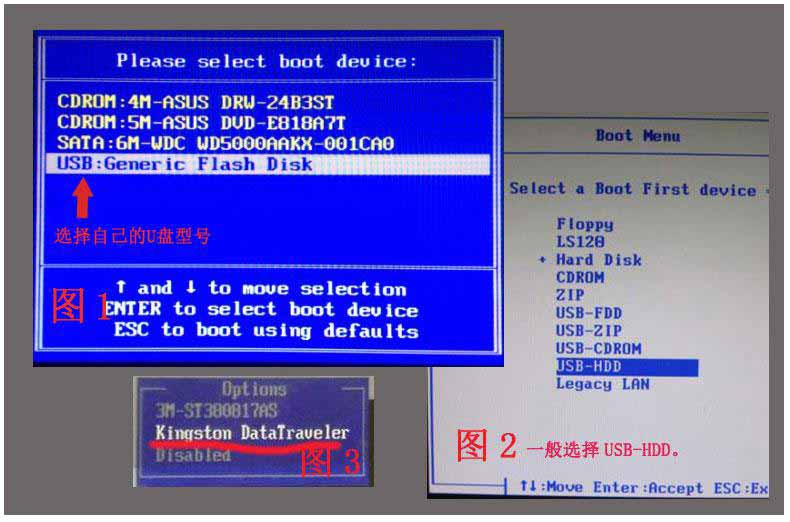 当我们经过相应的主板品牌快捷键进入"快速引导菜单"后我们会看到如下三种较为常见的菜单界面之一: