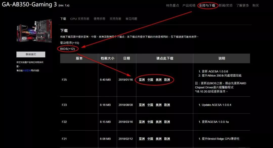 进入主板页面--支持与下载--BIOS,点亚洲/中国下载,亚洲/中国/美洲/欧洲只是服务器不同,下载的文件都是一样的。