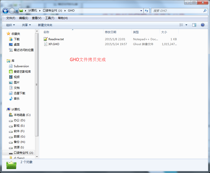 将下载好的XP系统镜像包复制到U盘GHO文件夹内!
