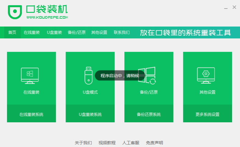 1、电脑下载好口袋装机软件并打开。记得先关闭电脑上的杀毒软件喔。