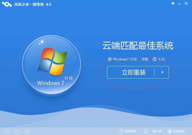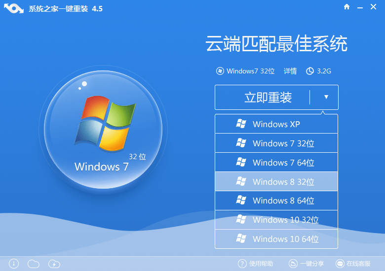 第一步:点开系统之家工具,并进入工具的主界面。选择适合自己的系统,点击“立即重装”进入下一步。