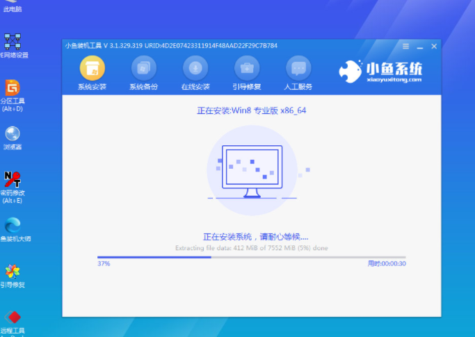1.回到电脑桌面,打开我们的小鱼一键重装软件下载。进入软件主页后,点击安装win8,选择后单击下一步。