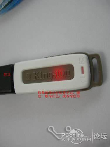 假货的状态指示灯位置不统一,颜色多为红色,而正品的指示灯为绿色,其位置刚好在金士顿头像处,并且只在进行读取操作时闪烁。
