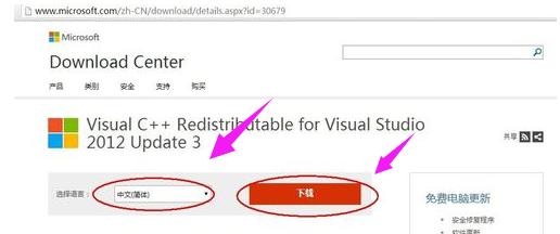 首先是打开浏览器,在浏览器的地址栏里输入 http://www.microsoft.com/zh-CN/download/details.aspx?id=30679 这个网址来进行相关程序的下载。