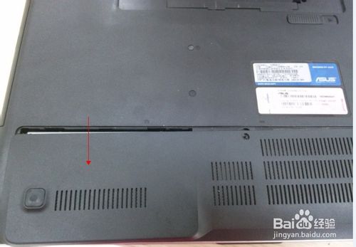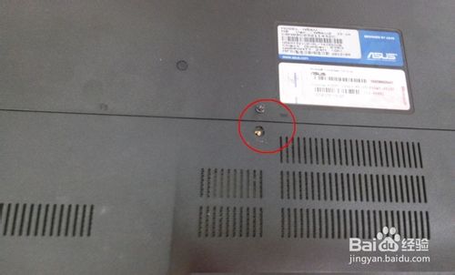 5、卸下螺丝,我的电脑只需卸下此一个即可。按照下图(右)中的方向将后盖取下