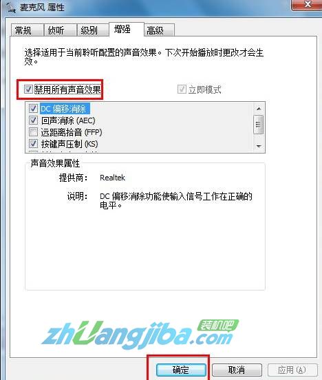 4. 进入“增强”,勾选“禁用所有声音效果”最后点击确定。