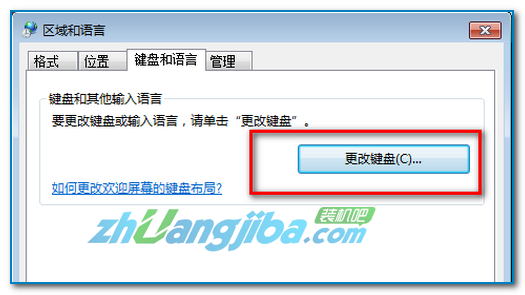点击“键盘和语言”选项卡下的“更改键盘”;