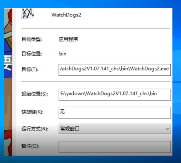 1、将 *游戏目录*\bin\中的Watch_Dogs 2.exe右键,发送到桌面快捷方式