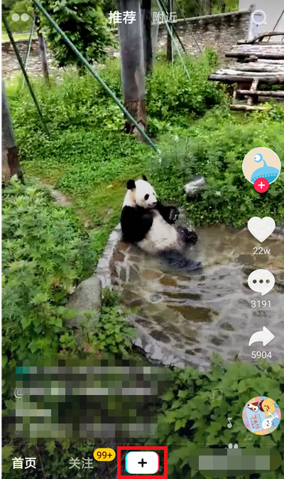 1.打开手机中的抖音APP,然后单击主页底部的[+]拍摄按钮。
