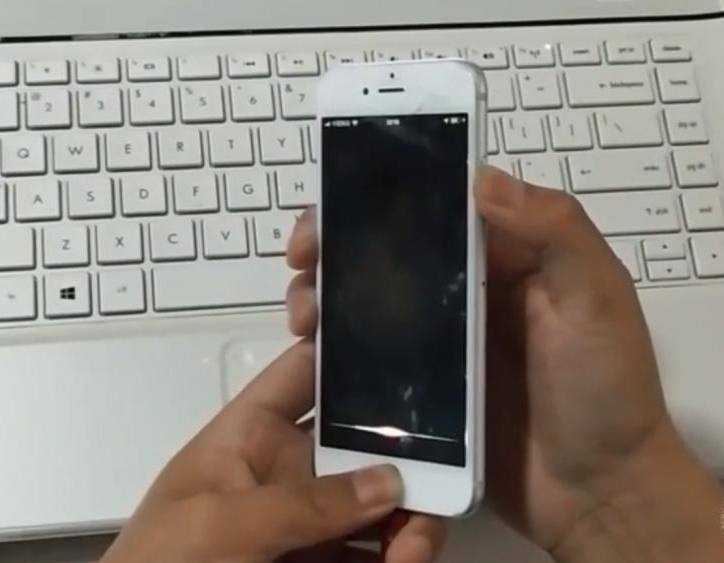 1、苹果使用数据线连接电脑上面,然后按住苹果手机的“home”按钮,然后按关机按钮,直到黑屏放开home键以及关机按钮。