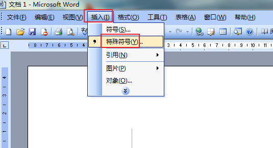 1、打 Word 文档,选择“插入”菜单列表中的“特殊符号”。