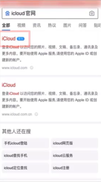 1、如果你想在手机上导出icloud的照片,可以通过手机浏览器搜索icloud官网,然后点击进入官网。