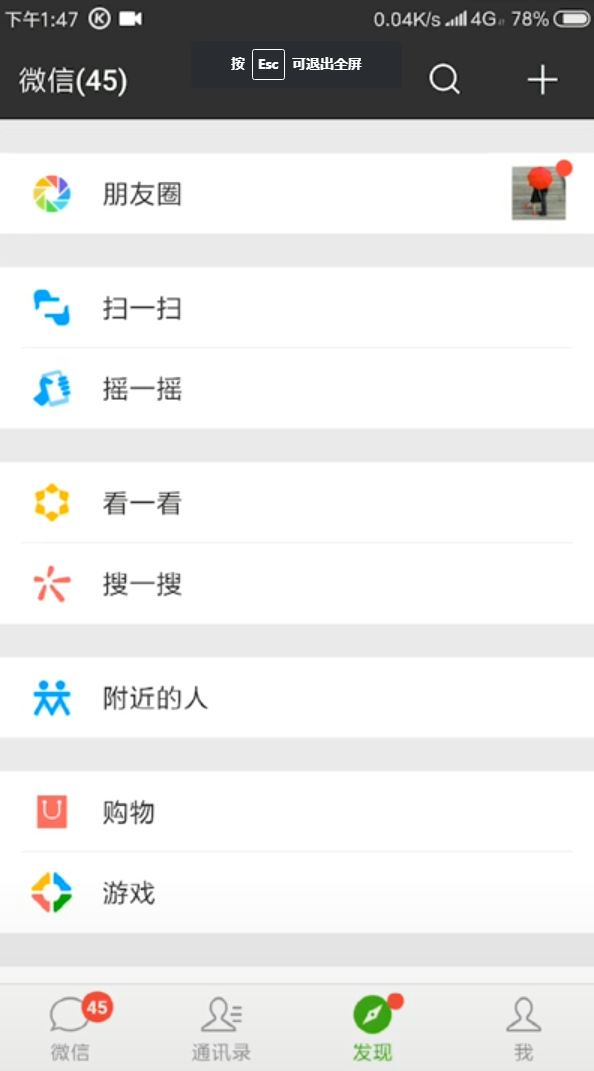 1.打开手机微信,进入主页,然后单击下面的“发现”。