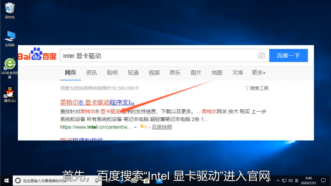 1、首先在百度搜索“Intel显卡驱动”进入官网。