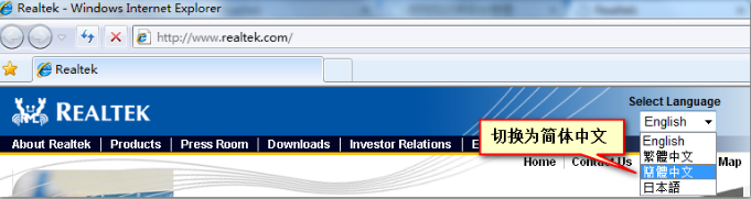 1、首先打开Reaktel官方网站,www.realtek.com 将语言切换为简体中文,然后点击最上方菜单中的 Downloads 进入下载页面。