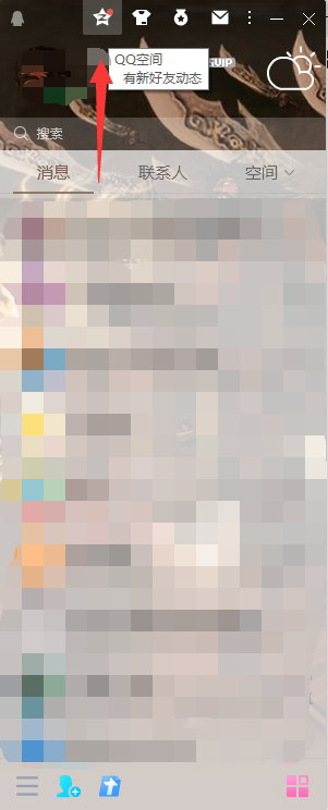 1、最简单的方法就是登录电脑QQ之后,点击上方的QQ空间图标进入。