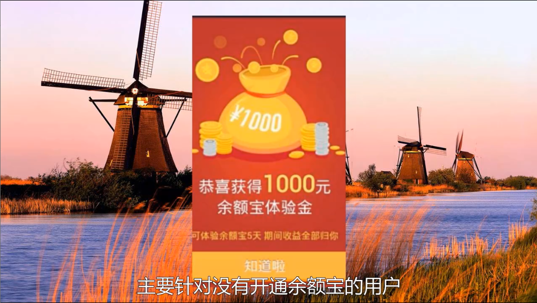 2、让没有开通余额宝的用户体验到将资金放在里面能获得多少收益,吸引用户往余额宝里面存钱。