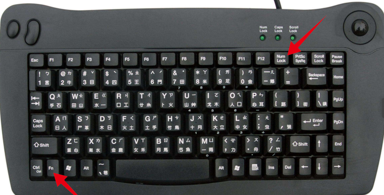1、首先我们可以同时按下键盘上的:Fn+Num Lock键,重置一下键盘即可解决问题。
