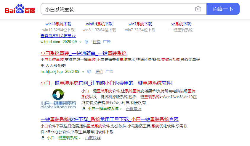 1.首先在百度搜索并下载小白一键重装系统即可。