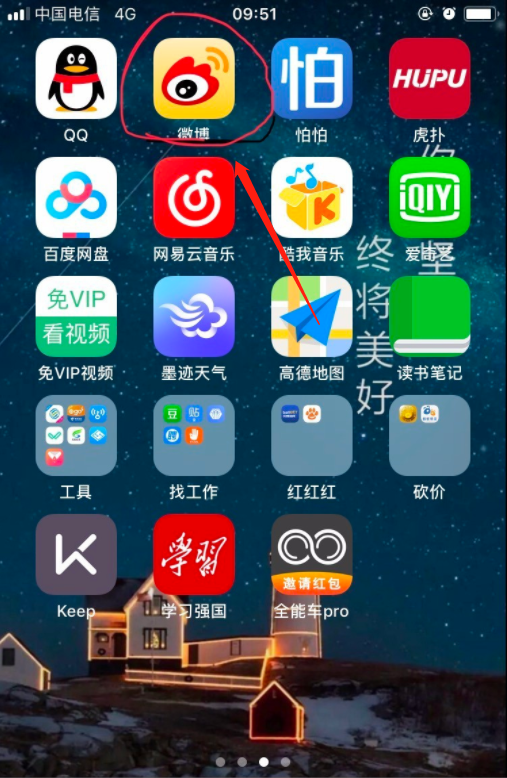 1、首先需要打开微博APP。