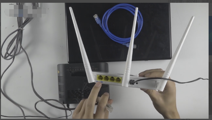 2、猫先连接路由器,把路由器的网线插入猫的插孔。