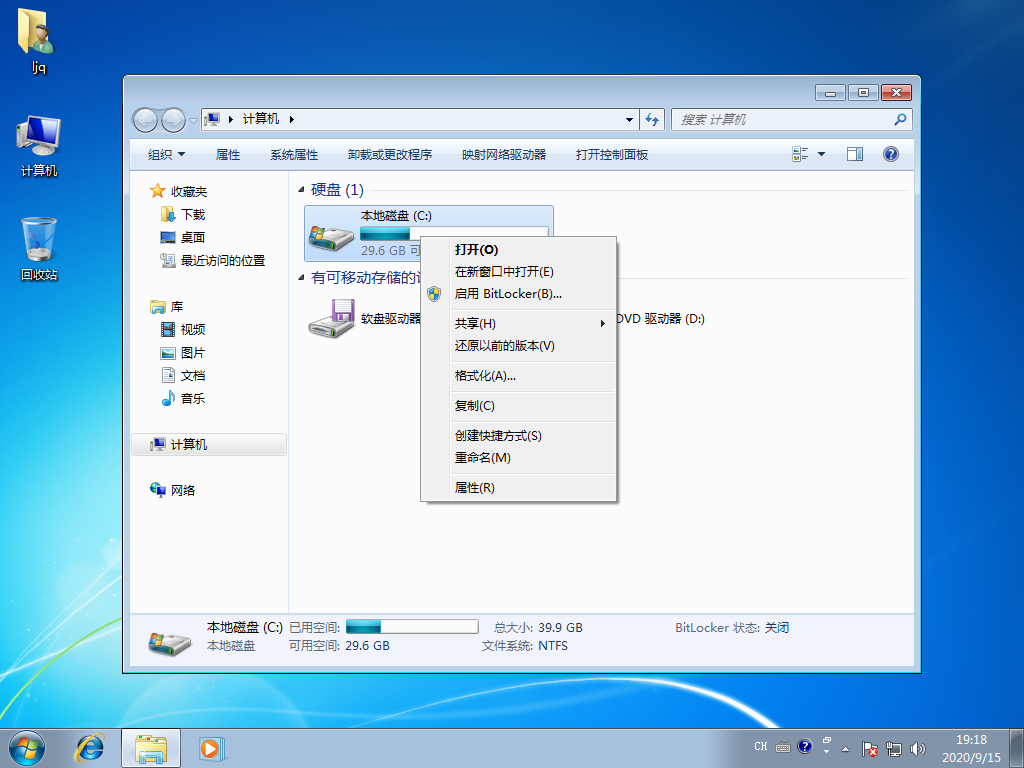 1、首先右击C盘,选择属性即可。