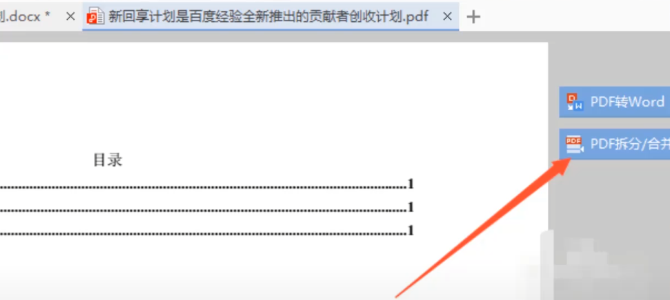 1、首先wps打开一个pdf的文件,点击pdf拆分/合并。