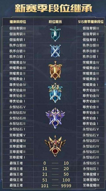 1、以下是s21赛季的段位继承规则,当然也是s20赛季结束时的继承规则,其规则已经5、6个赛季没有变幻过了。