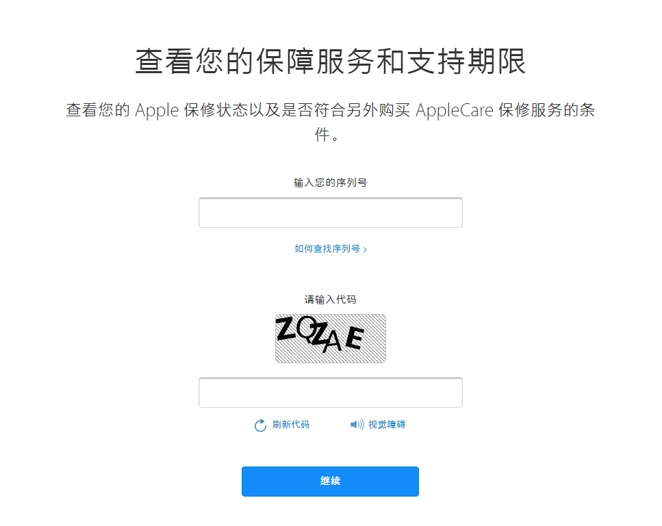 1、直接打开苹果官网 https://checkcoverage.apple.com/cn/zh/ 进入查询页面。