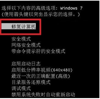 1、重启电脑按住F8,选择修复计算机