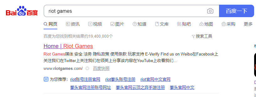 1、首先玩家可以搜索riot games也就是拳头公司的官网,这个在国内是也是可以直接访问的,切换语言到英文。之所以要切换到English官网,是因为中文的官网默认对应国服,所以账号系统也就和腾讯直接挂钩了。进入之后发现是中文的可以划到底部在左下角找到切换语言的选项。这个界面当中不只有LOL,而且也有符文之地传奇和云顶之弈在,可见其就是和外服的玩家账号系统关联的。