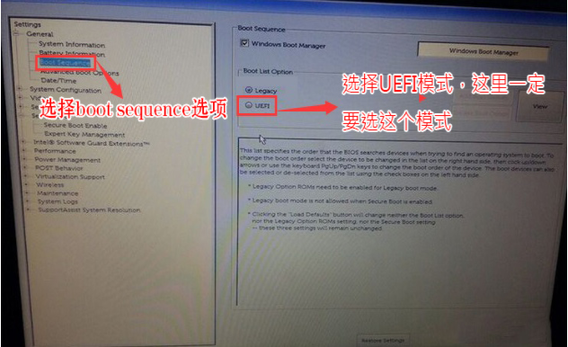 戴尔开启UEFI模式注意事项
