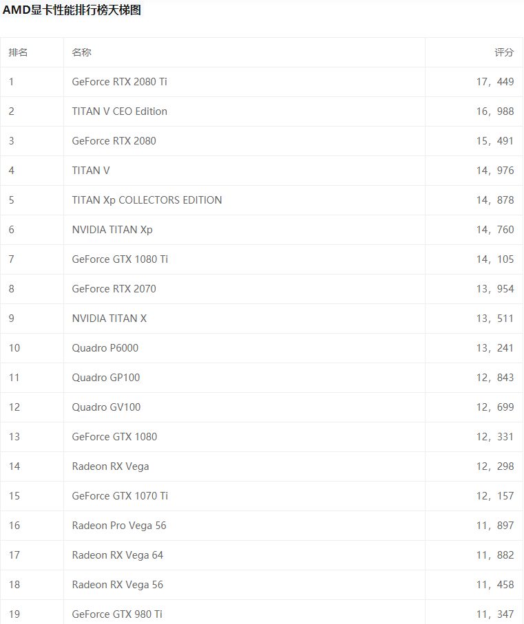 nvidia和amd显卡天梯图:
