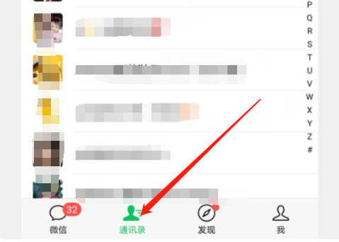 1、首先打开微信首页,在微信首页下面的功能表上有通讯录,点击打开通讯录。