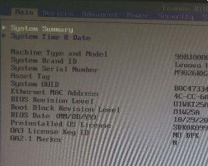 1、来到了BIOS,默认在main菜单,现在选择“Devices”菜单。