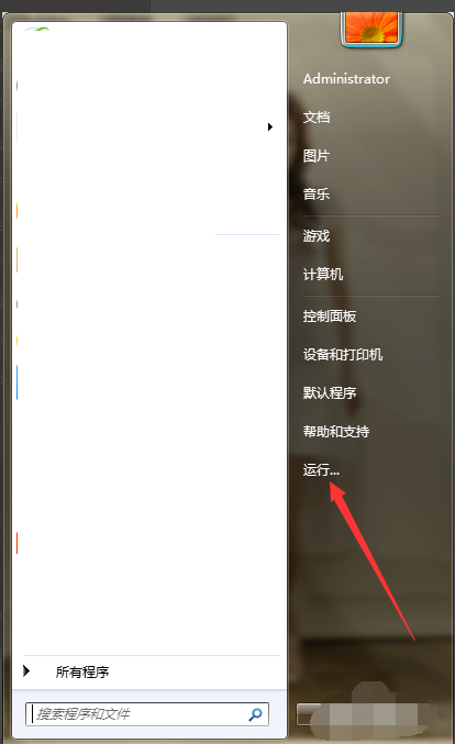 2、选择“运行”,打开运行窗口。