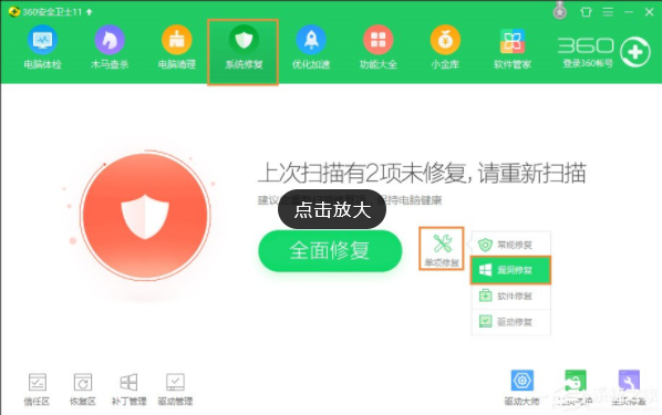 那360怎么启用蓝屏修复?先看看360新版蓝屏修复在哪。