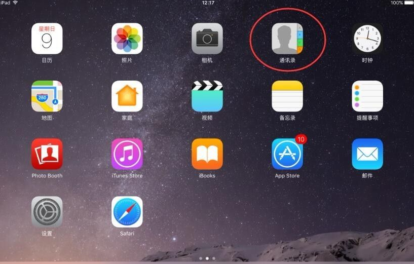 1、首先,我们在ipad首页上可以找到通讯录,如果没有通讯录图标的话,可以在设置中找到通讯录。