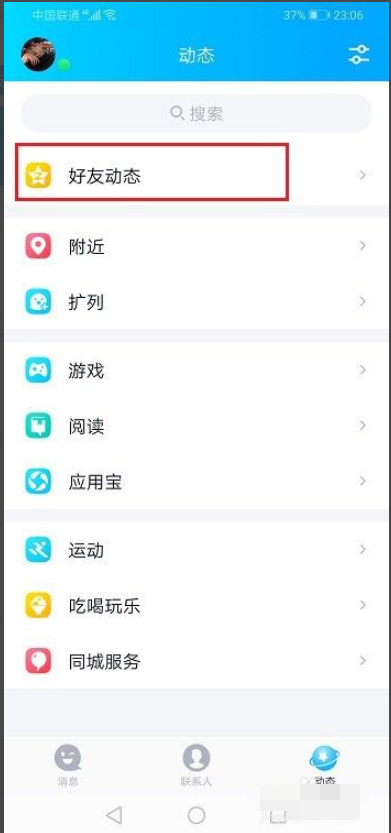1、第一步打开手机qq,进去动态页,点击好友动态,如下图所示: