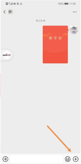 1、打开一个微信对话框,点击界面右下角的“+”。