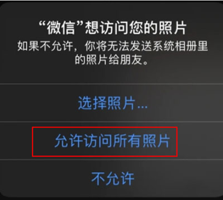 4、将微信允许访问照片的权限,改为【所有照片】,允许微信访问相册所有照片;