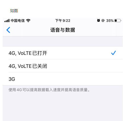 某些运营商会默认开启这项功能。要查看 VoLTE 是不是已开启,请前往“设置”>“蜂窝网络”>“蜂窝数据选项”,并开启“VoLTE”或“启用 LTE”。