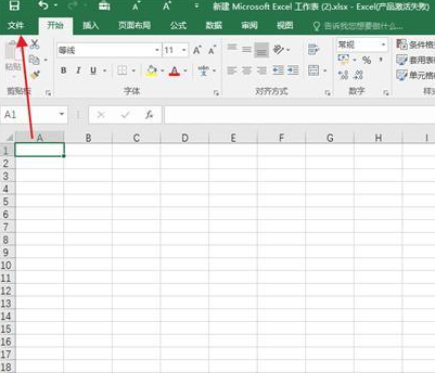 1、新建一个Excel工作簿,点击【开始】隔壁的【文件】菜单按钮选项。