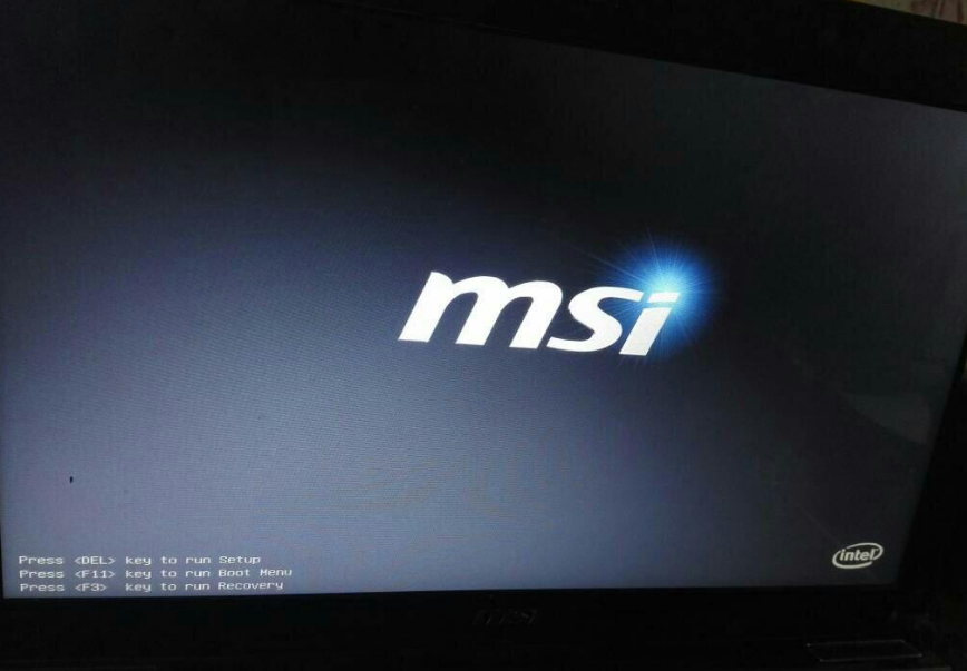 1、一般在开机的时候显示器停在 Logo 底部上都会有对应的快捷提示,而微星进入 Bios 的快捷键是 Del 键。