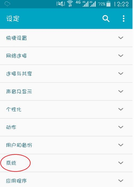 1、在应用程序中打开“设定”选项后,选择“系统”部分,如下图。