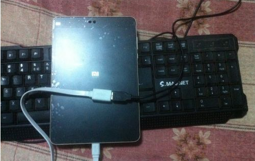 1、使用 Type-C 转 USB 转接头把小米平板 USB 键盘连接起来。